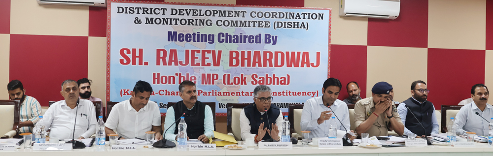 संसद डा राजीव भारद्वाज ने कहा कि स्मार्ट सिटी को लेकर पार्कों के संचालन, शौचालय सुविधा, सीवरेज तथा इलेक्टिक बसों के चलाने और कूड़ा कचरा संग्रहण के मामलों को उठाया गया है जिसको लेकर स्मार्ट सिटी के अधिकारियों के साथ अलग से बैठक आयोजित की जाएगी ताकि लोगों की समस्याओं का समाधान सुनिश्चित किया जा सके। उन्होंने कहा कि टांडा मेडिकल कालेज सीटी स्कैन, एक्सरे तथा एमआरआई की बेहतर सुविधा उपलब्ध करवाने के लिए कारगर कदम उठाएं। उन्होंने कहा कि आयुष्मान योजना के तहत लंबित भुगतान की भी जानकारी उपलब्ध करवाएं। उन्होंने टांडा मेडिकल काॅलेज द्वारा हाल ही में रोबोटिक सर्जरी जैसी नई चिकित्सा सुविधायें प्रदान करने की प्रशंसा करते हुए कहा कि मेडिकल काॅलेज में कांगड़ा, हमीरपुर के साथ ही चम्बा के दूर-दराज क्षेत्रों से भी मरीज आते हैं और यहां चिकित्सा सुविधाओं को ओर अधिक सृदृढ़ करने की आवश्यकता है। उन्होंने कहा कि आरडीएसएस जैसी महत्वाकांक्षी योजना से विद्युत ढांचे को अत्याधुनिक बनाया जा रहा है। इसके अंतर्गत पुराने ट्रांसफाॅर्मरों और तारों का नवीनीकरण, नई लाइनों का निर्माण, तथा स्मार्ट मीटरिंग को प्राथमिकता दी जा रही है। इससे बिजली आपूर्ति व्यवस्था को और अधिक पारदर्शी एवं सुदृढ़ बनाने में मदद मिलेगी, इसके बेहतर कार्यन्वयन के लिये जनप्रतिधियों को भी इस बारे में जानकारी प्रदान की जाये। इस अवसर उन्होंने कृषि विभाग को निर्देश दिये कि प्राकृतिक खेती को बढ़ावा देने के लिए किसानों को जागरूक किया जाये। उन्होंने कहा कि रासायनिक उर्वरकों और कीटनाशकों के बढ़ते प्रयोग से जहां मिट्टी की उर्वरक क्षमता प्रभावित हो रही है, वहीं पर्यावरण और मानव स्वास्थ्य पर भी प्रतिकूल प्रभाव पड़ रहा है। ऐसे में प्राकृतिक खेती किसानों के लिए एक टिकाऊ, लाभकारी और स्वास्थ्यवर्धक विकल्प है। उन्होंने कहा कि माननीय प्रधानमंत्री श्री नरेन्द्र मोदी भी प्राकृतिक उत्पादों के प्रयोग पर बल देते हैं और अब तो संसद में भी प्राकृतिक उत्पादों ओर मोटे अनाज के प्रयोग पर बल दिया जा रहा है। इस अवसर पर उन्होंने कहा कि विभिन्न विभाग विकासात्मक कार्याें में जनप्रतिनिधियों की सहभागिता भी सुनिश्चित की जाये जिससे सरकार के कार्यक्रमों का लाभ जन-जन तक पहुंच सके। बैठक में विधायक रणवीर निक्का, विधायक पवन काजल और जिला परिषद अध्यक्ष रमेश बराड़ तथा गैर सरकारी सदस्यों ने विकास कार्यों को लेकर अपने बहुमूल्य सुझाव दिए। उपायुक्त हेमराज बैरवा ने बैठक में जारी दिशा निर्देशों का पूरा पालन करने का भरोसा दिलाया। बैठक में आयुक्त नगर निगम जफर इकबाल, पुलिस अधीक्षक अशोक रत्न सहित सभी विभागों के अधिकारी मौजूद रहे।