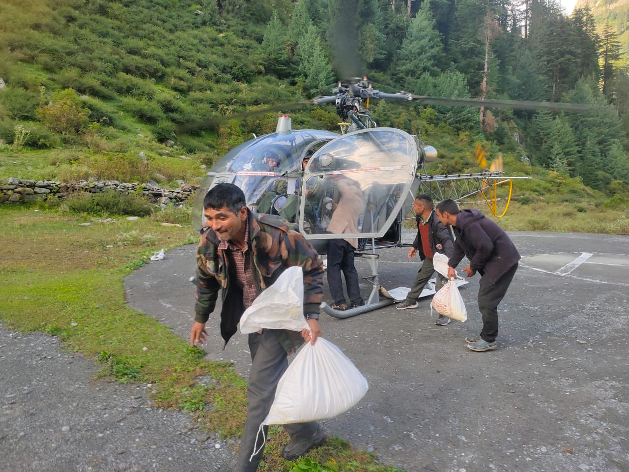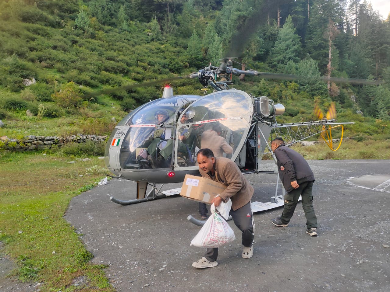 धर्मशाला जिला प्रशासन कांगड़ा द्वारा राहत और बचाव कार्यों को निरंतर गति दी जा रही है। शनिवार को सेना के हेलीकॉप्टर की मदद से सरकार तथा जिला प्रशासन ने बाढ़ से प्रभावित जिला के अति दुर्गम बड़ा भंगाल क्षेत्र में लोगों तक राशन, दवाइयाँ एवं अन्य आवश्यक सामग्री पहुँचाई। राहत सामग्री पहुँचने से प्रभावित लोगों को बड़ी राहत मिली है। यह जानकारी देते हुए उपायुक्त हेमराज बेरवा ने कहा कि बीते कल बड़े हेलीकॉप्टर के माध्यम से सामग्री पहुँचाने का प्रयास किया गया था, किंतु भौगोलिक एवं मौसम संबंधी परिस्थितियों के कारण बड़ा हेलीकॉप्टर बड़ा भंगाल क्षेत्र में उतर नहीं पाया। इसके उपरांत वायुसेना के छोटे हेलीकॉप्टर को लगाया गया, जिसके माध्यम से आज प्रभावित क्षेत्रों में आवश्यक सामग्री सफलतापूर्वक पहुँचा दी गई। उपायुक्त कांगड़ा ने बताया कि प्रशासन प्रभावित परिवारों के साथ पूरी मजबूती से खड़ा है और किसी भी प्रकार की कमी नहीं आने दी जाएगी। उन्होंने कहा कि प्रभावित लोगों तक राहत सामग्री की आपूर्ति निरंतर जारी रहेगी। साथ ही उन्होंने जनता से अपील की कि वे धैर्य बनाए रखें तथा आवश्यकता पड़ने पर तुरंत प्रशासन को सूचित करें। उन्होंने कहा कि मुख्यमंत्री हिमाचल प्रदेश श्री सुखविंदर सिंह सुक्खू ने कांगड़ा जिला के बड़ा भंगाल तथा आपदा प्रभावित क्षेत्रों में राहत तथा पुनर्वास कार्यों को लेकर नियमित तौर पर पर माॅनिटरिंग कर रहे हैं तथा शीघ्र ही बड़ा भंगाल क्षेत्र का दौरा करेंगे और वहाँ हुए नुकसान का व्यक्तिगत रूप से जायजा लेंगे। इससे पहले बाढ़ प्रभावित इंदौरा क्षेत्र का हवाई निरीक्षण भी कर चुके हैं।