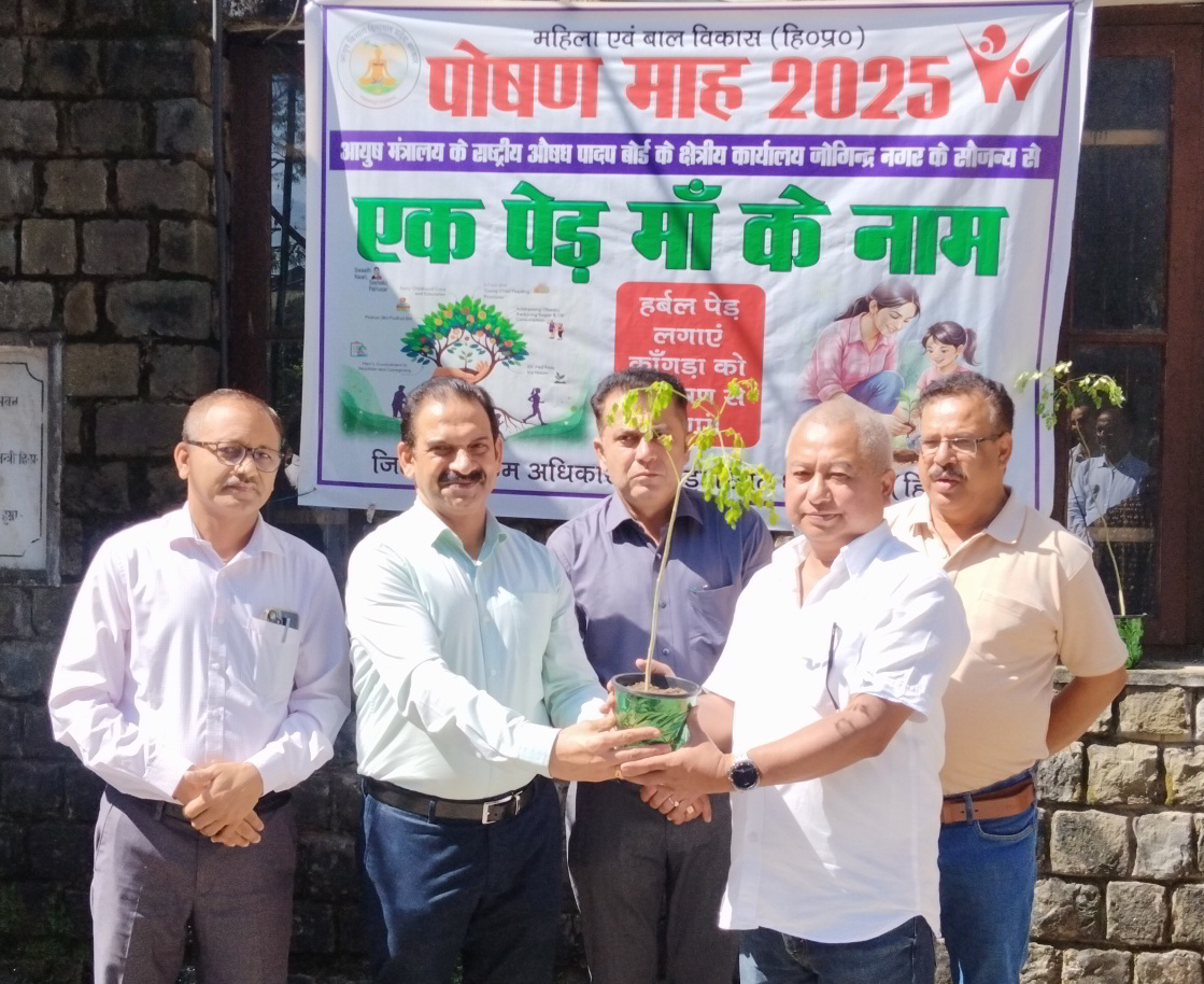 धर्मशाला जिला कार्यक्रम अधिकारी कार्यालय कांगड़ा में पोषण माह 2025 के अंतर्गत औषधीय पौधों का वितरण कार्यक्रम आयोजित किया गया। इस अवसर पर अतिरिक्त उपायुक्त विनय कुमार ने जिला कार्यक्रम अधिकारी महिला एवं बाल विकास, जिला आयुर्वेद अधिकारी एवं आयुष मंत्रालय की प्रतिनिधि की उपस्थिति में सभी बाल विकास परियोजना अधिकारियों को मोरिंगा और अश्वगंधा के पौधे वितरित किए। इस अवसर पर अतिरिक्त उपायुक्त विनय कुमार ने कहा कि एक पेड़ माँ के नाम एक अभिनव पहल है इसका उद्देश्य माँ की ममता और धरती की हरियाली को जोड़ते हुए मातृ एवं शिशु पोषण को सुदृढ़ बनाना है। उन्होंने कहा कि यह अभियान केवल पौधारोपण तक सीमित नहीं है, बल्कि मातृ-शिशु स्वास्थ्य और पोषण से गहराई से जुड़ा हुआ है। आंगनबाड़ी केंद्र इस पहल के माध्यम से पोषण सुरक्षा, पर्यावरण संरक्षण और सामुदायिक जागरूकता का त्रिवेणी संगम बनेंगे। उन्होेंने कहा कि एक पेड़ माँ के नाम अभियान हर नागरिक को अपनी माँ के सम्मान में पौधा लगाने के लिए प्रेरित करता है। जैसे माँ अपने बच्चों को जीवन और पोषण देती है, वैसे ही पौधे पूरे पर्यावरण को जीवन, आधार और शुद्ध वायु प्रदान करते हैं। यह संदेश महिलाओं और बच्चों के स्वास्थ्य तथा परिवार के पोषण से सीधा जुड़ा हुआ है। जिला कार्यक्रम अधिकारी, महिला एवं बाल विकास अशोक कुमार ने कहा कि पौधों का वितरण आंगनबाड़ी स्तर पर किया जा रहा है और कार्यकर्ताओं को इन पौधों की देखभाल और उपयोगिता के बारे में समुदाय को जागरूक करने की जिम्मेदारी दी गई है। उन्होंने कहा कि इस अभियान के तहत कांगड़ा जिले की आंगनबाड़ियों में औषधीय और पोषणवर्धक पौधों अश्वगंधा और सहजन का वितरण किया जा रहा है। इन पौधों की आपूर्ति राष्ट्रीय औषधीय पौधा बोर्ड, आयुष मंत्रालय, भारत सरकार के क्षेत्रीय केंद्र द्वारा की गई है। यह केंद्र भारतीय चिकित्सा पद्धति अनुसंधान संस्थान जोगिंद्र नगर में कार्यरत है। जिला आयुष अधिकारी डाॅ. हरीश भारद्वाज ने बताया कि अश्वगंधा और सहजन मातृ एवं शिशु पोषण के लिए अत्यंत उपयोगी हैं। अश्वगंधा तनाव कम करती है और ऊर्जा बढ़ाती है, जबकि सहजन एनीमिया और कुपोषण दूर करने का प्रभावी उपाय है। उन्होंने कहा कि महिलाओं के लिए सहजन कैल्शियम और आयरन का प्राकृतिक स्रोत है, जो गर्भवती और स्तनपान कराने वाली माताओं के लिए लाभकारी है। अश्वगंधा तनाव कम करने और ऊर्जा बढ़ाने में सहायक है। बच्चों के लिए सहजन की पत्तियाँ और फलियाँ प्रोटीन और विटामिन से भरपूर हैं, जो बच्चों की वृद्धि और रोग प्रतिरोधक क्षमता को बढ़ाती हैं। अश्वगंधा मानसिक और शारीरिक विकास को सुदृढ़ करती है।
