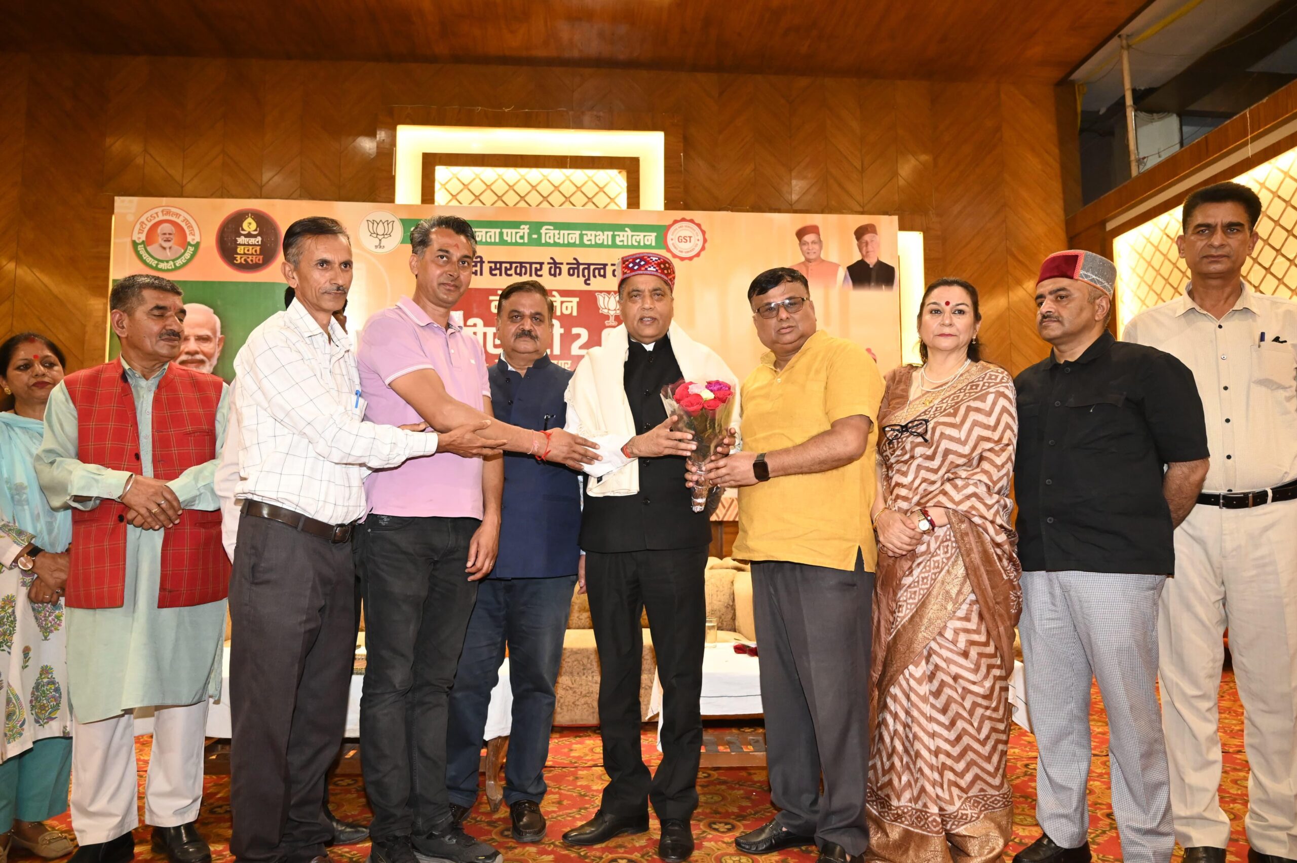 सोलन : पूर्व मुख्यमंत्री एवं नेता प्रतिपक्ष जयराम ठाकुर ने सोलन का दौरा कर नेक्स्ट जेनरेशन जीएसटी रिफॉर्म संगोष्ठी को संबोधित किया। अपनी यात्रा के दौरान वह सर्वप्रथम माता माँ शूलिनी देवी दरबार पहुंचे और पूजा अर्चना कर प्रदेशवासियों के कल्याण की प्रार्थना की। इसके बाद जनसभा को संबोधित करते हुए उन्होंने कहा कि बहुत लंबे समय बाद देश को इतना मजबूत नेतृत्व मिला है। यह हम देशवासियों का सौभाग्य है। प्रधानमंत्री नरेंद्र मोदी का शासन काल भ्रष्टाचार मुक्त, पारदर्शितायुक्त, जनहित के लिए समर्पित है। 11 साल का कार्यकाल ऐतिहासिक उपलब्धियां से भरा रहा है। मोदी सरकार हर दिन देशवासियों को राहत देने का काम करती है जबकि हिमाचल प्रदेश में सुखविंदर सिंह सुक्खू की सरकार टैक्स का बोझ डालकर प्रदेशवासियों को हर दिन परेशान करती है। जब प्रधानमंत्री ने नेक्स्ट जेनरेशन जीएसटी लागू करके देशवासियों को कर से राहत दी तो हिमाचल प्रदेश में व्यवस्था परिवर्तन वाली सुख की सरकार ने रातों रात चुपके एडिशनल गुड्स टैक्स यानी एजीटी बढ़ाकर 16 रुपए कर दिया। जिससे सीमेंट छह रुपए महंगा हो गया। यह फैसला 15 सितंबर की कैबिनेट बैठक में ही गुपचुप तरीके से किया गया। हैरानी की बात यह है कि मीडिया ब्रीफिंग में सरकार के प्रतिनिधि ने इसका जिक्र भी नहीं किया। एक तरफ प्रदेश में मोदी सरकार सीमेंट के दाम में ₹40 की कमी करती है तो सुक्खू सरकार 6 रुपए की वृद्धि कर देती है। आपदा ग्रस्त प्रदेश वासियों को राहत देने के लिए हिमाचल सरकार तत्काल एजीटी वापस ले। टैक्स लादकर सरकार चलाने का फार्मूला मुख्यमंत्री को बंद करना होगा। जनसभा को संबोधित करते हुए जयराम ठाकुर ने कहा कि यूपीए की मनमोहन सिंह सरकार में जो देश और प्रदेश के लोगों को जिन वस्तुओं पर 30% टैक्स देना पड़ता था वह वस्तुएं आज 5% टैक्स के दायरे में आ रही हैं। यूपीए के कार्यकाल में पेंट, डिटर्जेंट, शैंपू,कॉफी, टूथपेस्ट, मिनरल वाटर, कॉस्मेटिक जैसे रोजमर्रा के सामानों पर 30% का टैक्स लगाया जाता था लेकिन नेक्स्ट जेनरेशन जीएसटी में इन पर 5% टैक्स ही लग रहा है। उन्होंने कहा कि वर्तमान में प्रदेश की सुक्खू सरकार जन विरोधी सरकार है। नेक्स्ट जेनरेशन जीएसटी से पूरे देश के लोग खुश हैं सिर्फ कांग्रेस के नेता दु:खी हैं। जबकि कांग्रेस के केंद्रीय नेता अलग ही राग अलाप रहे हैं। जयराम ठाकुर ने कहा कि नेक्स्ट जेनरेशन जीएसटी देशवासियों को सरकार द्वारा दिया गया अब तक का सबसे बड़ा तोहफा है। इस जीएसटी के सुधार लागू होने के बाद से चार पहिया वाहन की खरीद पर भी कम से कम 50 हजार और मोटरसाइकिल खरीदने पर भी कम से कम 10 हजार रुपए की बचत हो रही है। कैंसर, थैलेसीमिया जैसी जानलेवा बीमारियों में प्रमुखता से इस्तेमाल होने 