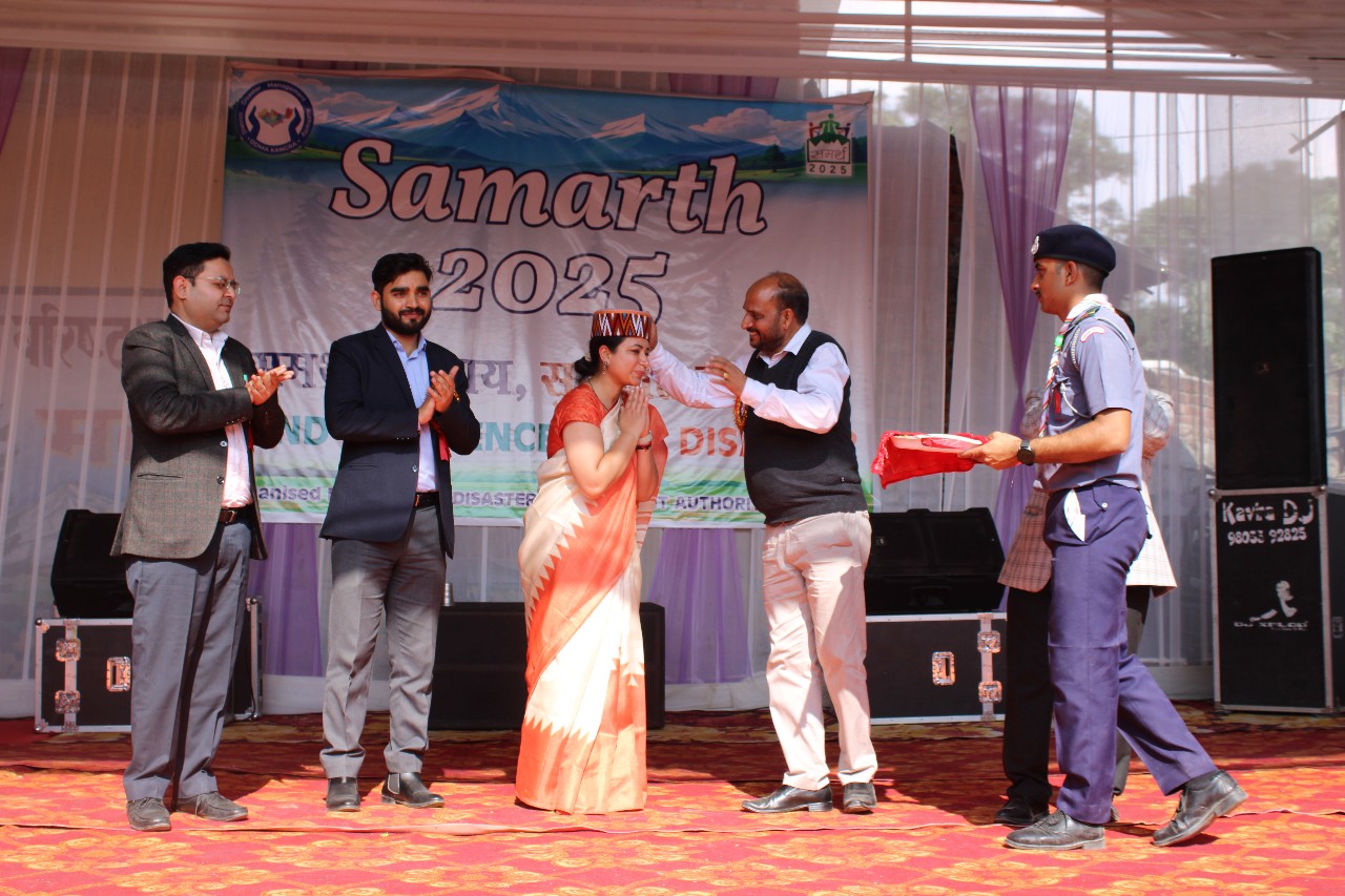 धर्मशाला कांगड़ा के मटौर में आयोजित “जिला स्तरीय समर्थ मेला-2025” में मुख्यातिथि एडीएम शिल्पी बेक्टा ने कांगड़ा जिला में आपदा जोखिम न्यूनीकरण एवं राहत कार्यों में उत्कृष्ट योगदान देने वाले अधिकारी-कर्मचारियों और स्वयंसेवकों को सम्मानित किया गया। इसके साथ ही एसडीआरएफ, होम गार्ड्स एवं फायर सर्विसेज, जिला आपदा प्रबंधन प्राधिकरण, आपदा मित्र टीमों को प्रशंसा पत्र भी प्रदान किए गए। समर्थ अभियान के तहत आपदा-रोधी निर्माण एवं भवन मॉडल प्रदर्शनी वाद-विवाद प्रश्नोत्तरी पोस्टर-निर्माण एवं चित्रकला प्रतियोगिताएँ भी आयोजित की गईं। इस अवसर पर मुख्यातिथि एडीएम शिल्पी बेक्टा ने विद्यालयों एवं महाविद्यालयों की सक्रिय भागीदारी तथा विभिन्न एजेंसियों के उत्कृष्ट समन्वय की सराहना करते हुए कहा कि “समर्थ मेला जिला-स्तर पर आपदा प्रबंधन, शिक्षा संस्थानों और समुदाय के बीच एक सशक्त समन्वय का उदाहरण है। उन्होंने कहा कि आपदा से प्रबंधन के लिए तैयारी, सहयोग और सामुदायिक सजगता अत्यंत जरूरी है।