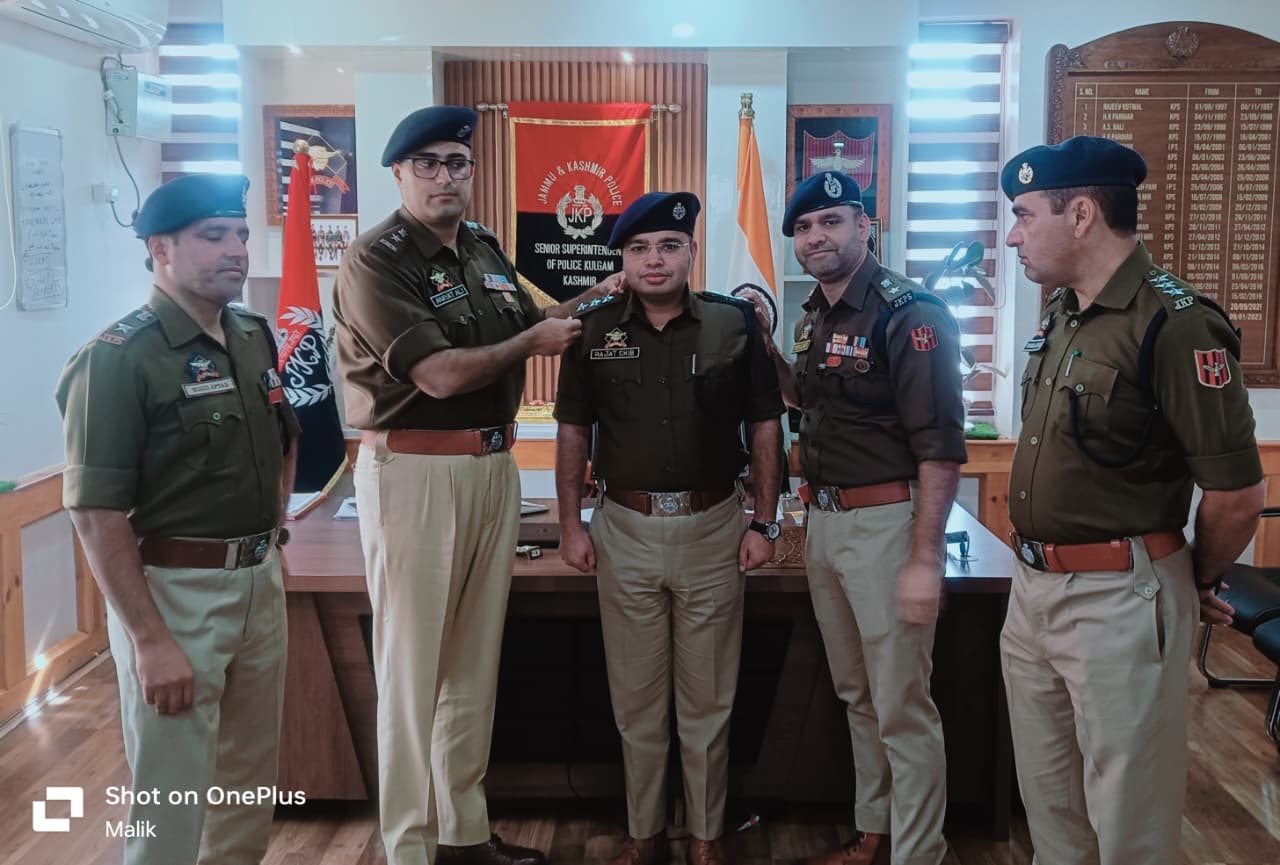 एसएसपी कुलगाम ने उनसे समाज की बेहतरी और पुलिस विभाग की प्रतिष्ठा के लिए उत्साह, निष्ठा और व्यावसायिकता के साथ काम करते रहने का आग्रह किया। अधिकारियों ने अपनी परिवीक्षा अवधि के दौरान निरंतर मार्गदर्शन और सहयोग के लिए वरिष्ठ अधिकारियों का आभार व्यक्त किया। रंगीन समारोह के दौरान, नव-पदोन्नत अधिकारियों ने उन्हें अगले पद प्रदान करने और समय पर पदोन्नति के लिए पुलिस विभाग के प्रति आभार व्यक्त किया। इस अवसर पर कुलगाम पुलिस के अन्य वरिष्ठ अधिकारी भी उपस्थित थे और उन्होंने पदोन्नत अधिकारियों को बधाई दी।
